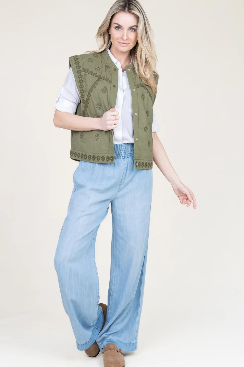 A True Essentialembroidered Waistcoatround Necksleevelesstwo Pocketscloses With Buttonsregular Fitcomposition100% Cottonwashing Instructionsmachine Wash 30 Degrees