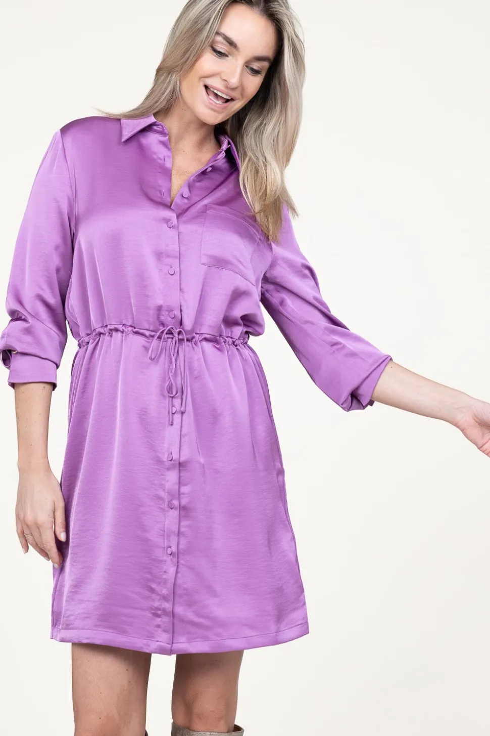 Your New Favorite Dressstretch Satin Dressshirt Collarlong Sleeves With Cuffsbow Belt At Waistcloses With Buttonsmini Lengthbreast Pocketlinedregular Fitcomposition51% Recycled Polyester, 49% Polyesterlining: 97% Polyester, 3% Elastanewashing Instructionsmachine Wash 30 Degrees