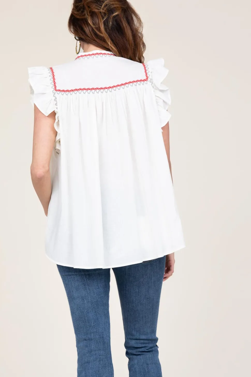 Your New Favorite Topsoft Cotton Top With Embroideryround Necksleeveless With Rufflessplits On The Sidebuttons On Topreg…