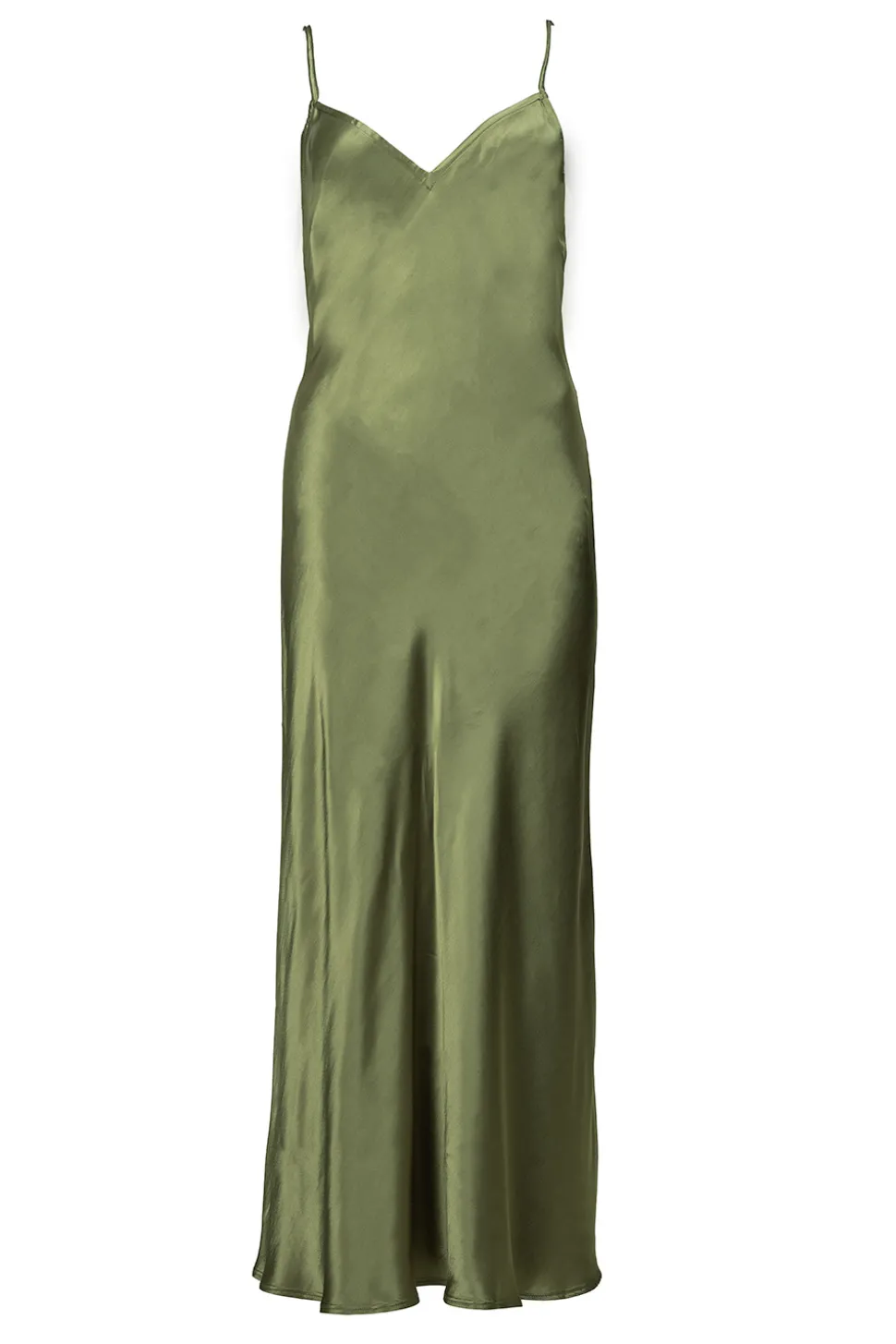 Fashion Greek Archaic Kori Satin Dress Zena | Green… | | Little Soho