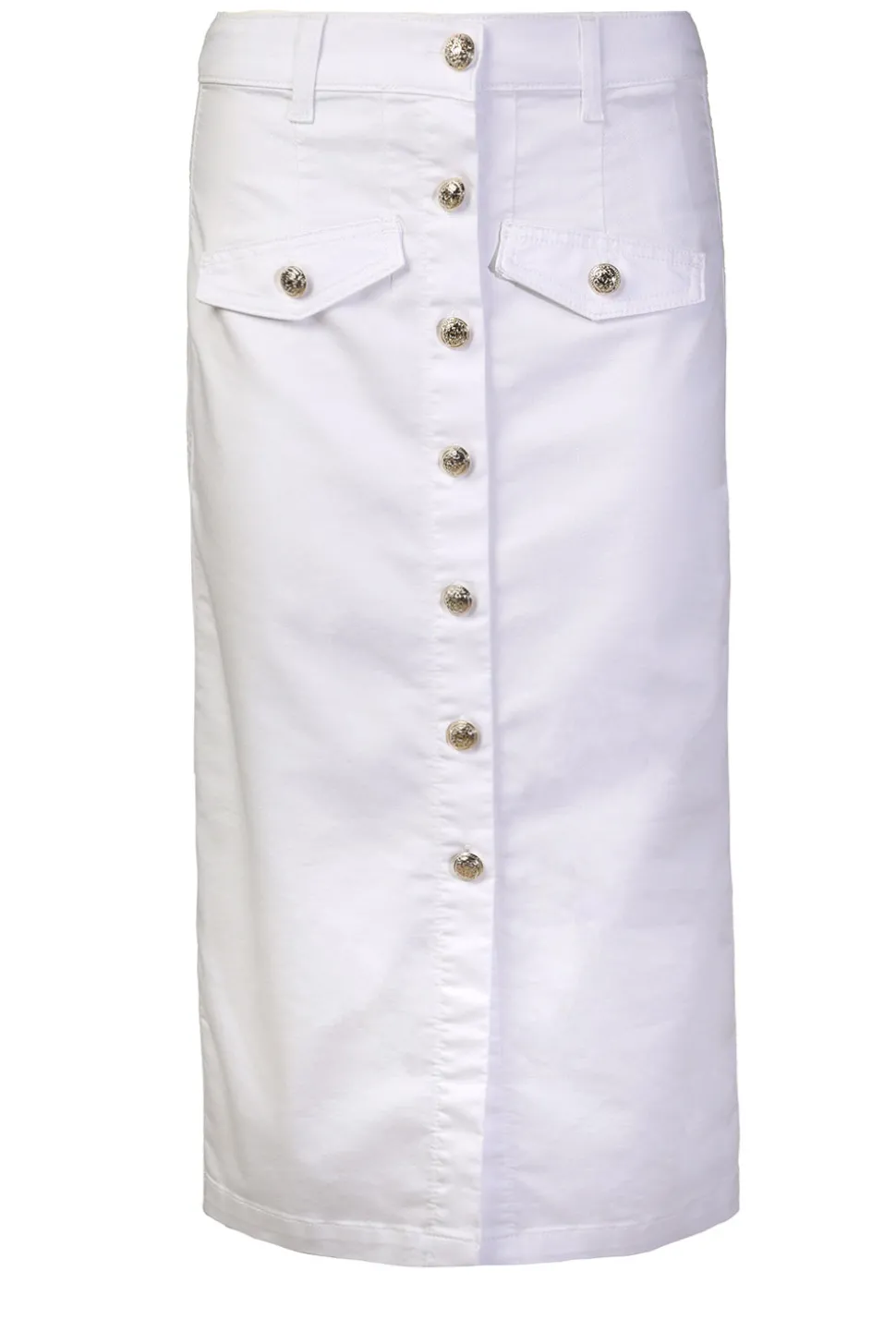 Your New Favorite Skirtstretch Denim Skirt With Gold Colored Detailscloses With Buttonsmidi Lengthtwo Decorative Front A…