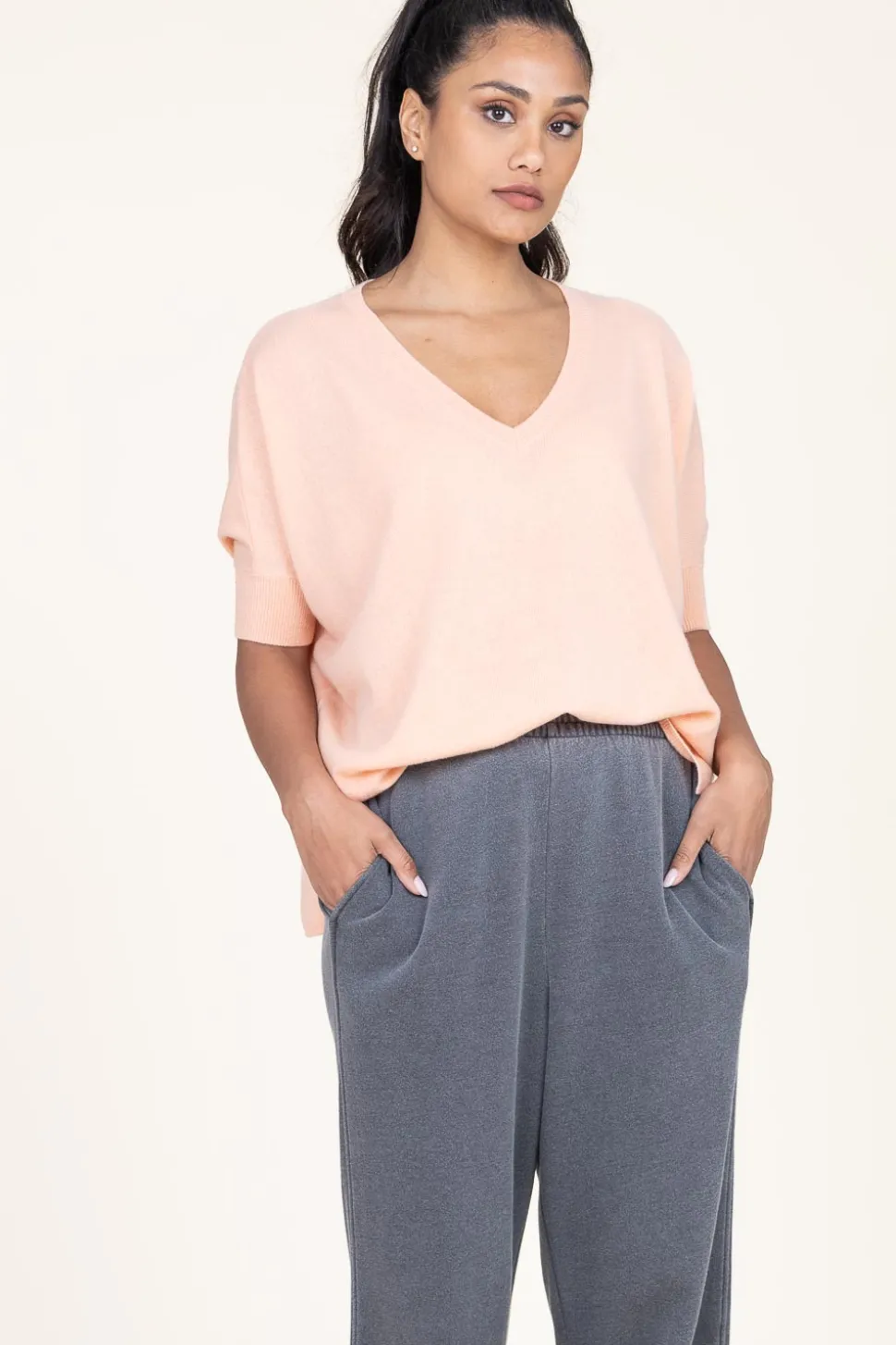 Comfy &Amp;Amp; Stylishsoft Cashmere Sweaterv-Neckthree Quarter Sleevessplits On The Sidesribbed Neck, Seem And Cuffsove…