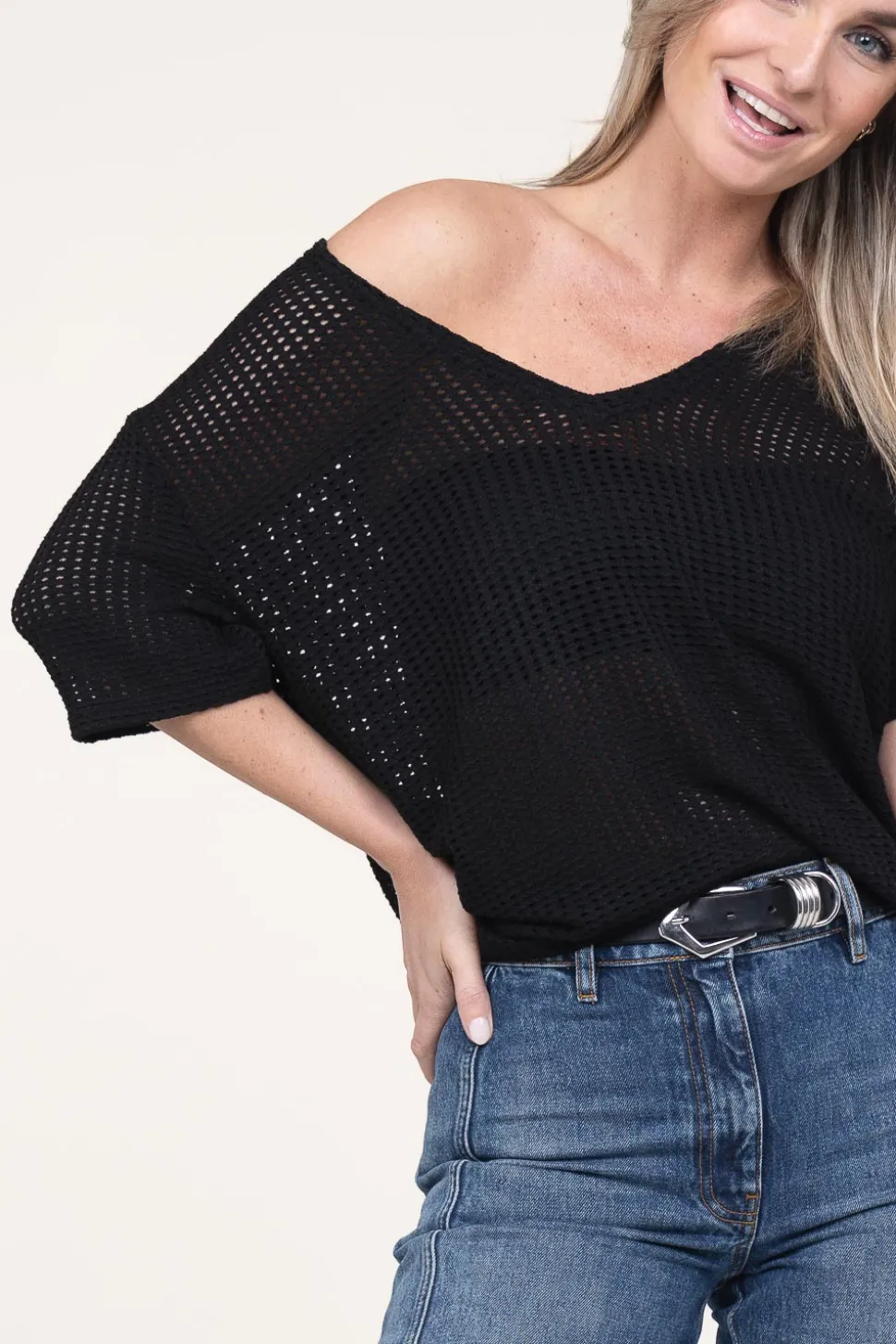Eyecatcher Alert!Knitted Mesh Topv-Neckshort Sleevessee-Through Fabricregular Fitcomposition97% Viscose, 3% Elastanewashing Instructionshand Wash