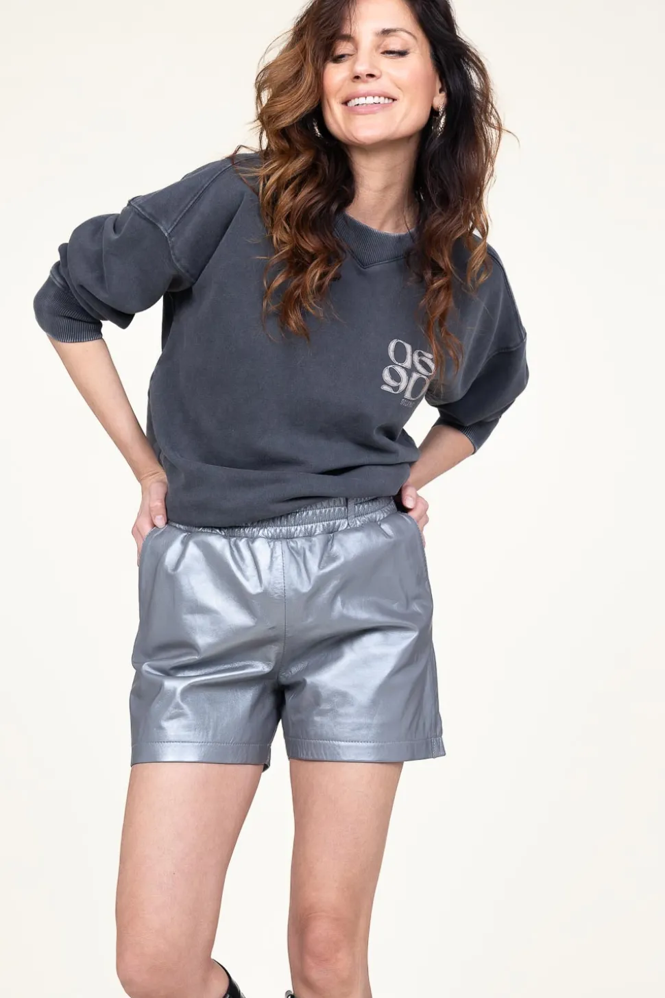 Hot STUDIO AR Non-Stretch Leather Short Rosa | Silver… | | Little Soho