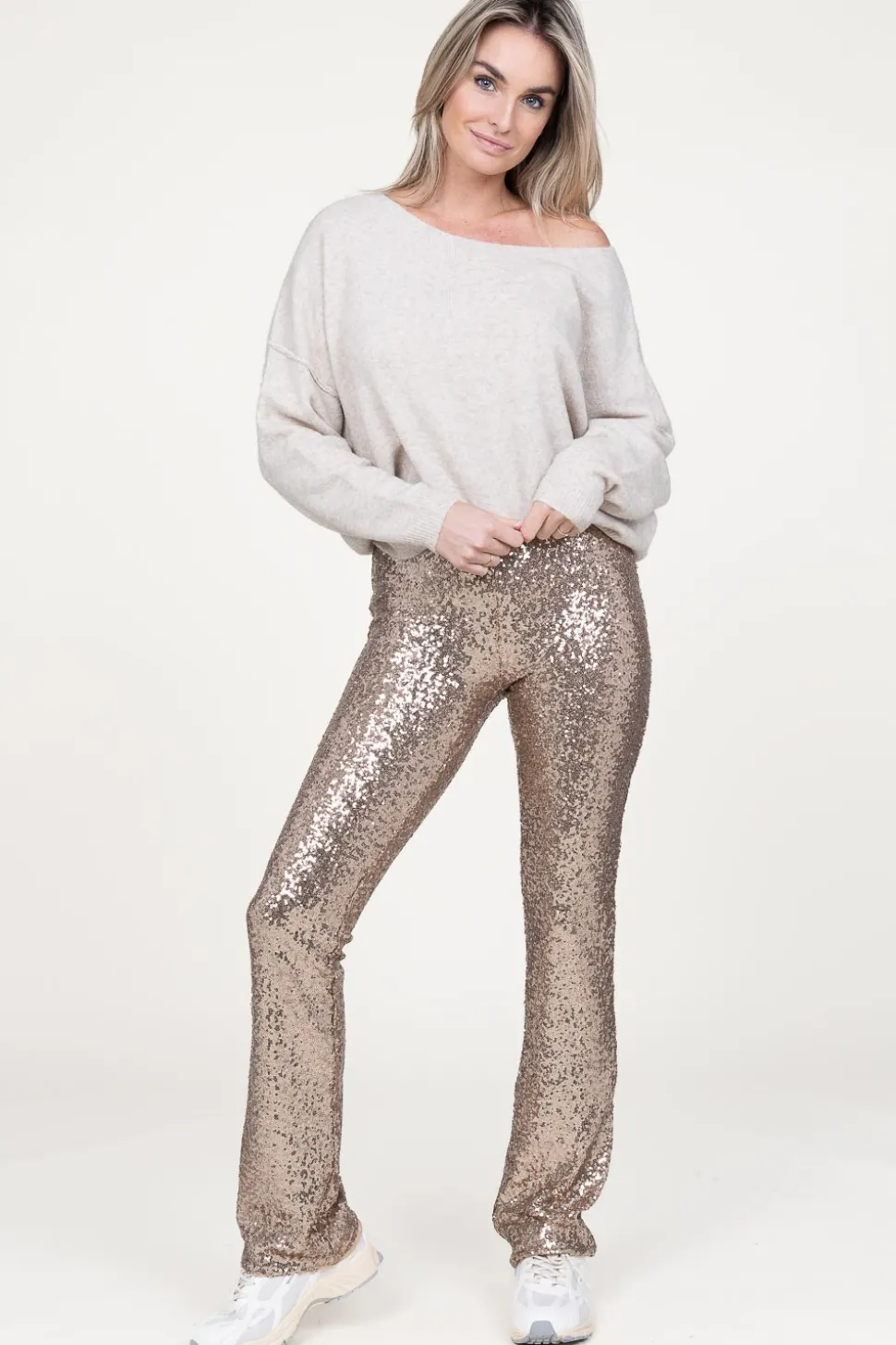 Eyecatcher Alert!Stretch Sequins Trouserswide Legcloses With Zipper On The Sidelinedregular Fitcompositionlining: 95% Po…