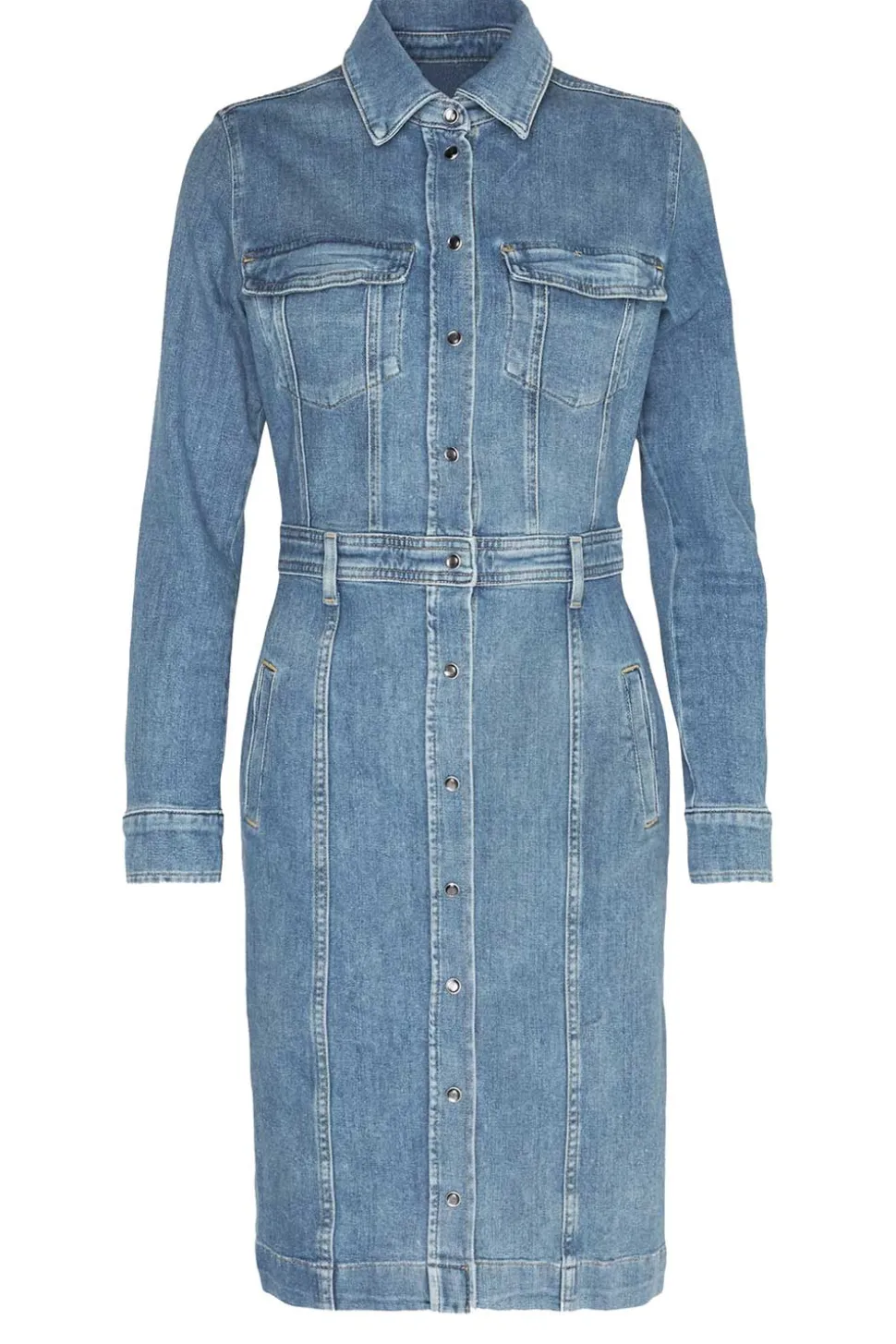 Denim Is Always A Good Idea!Stretch Denim Dressshirt Collarlong Sleeves With Cuffstwo Breast And Slanted Pocketscloses With Buttonsbelt Loopsfigure-Hugging Fitcomposition92% Cotton, 6% Elastomultiester, 2% Elastanewashing Instructions