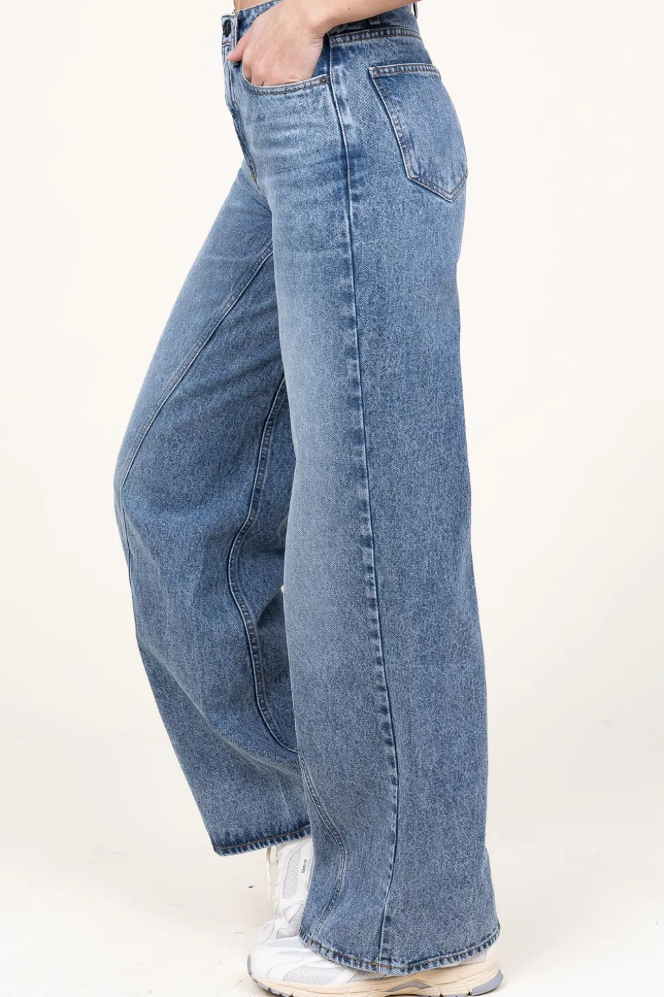 A True Essentialnon-Stretch Wide Leg Jeanscloses With Button And Hidden Zipper5-Pocket Modelbelt Loopswide Fitcompositio…