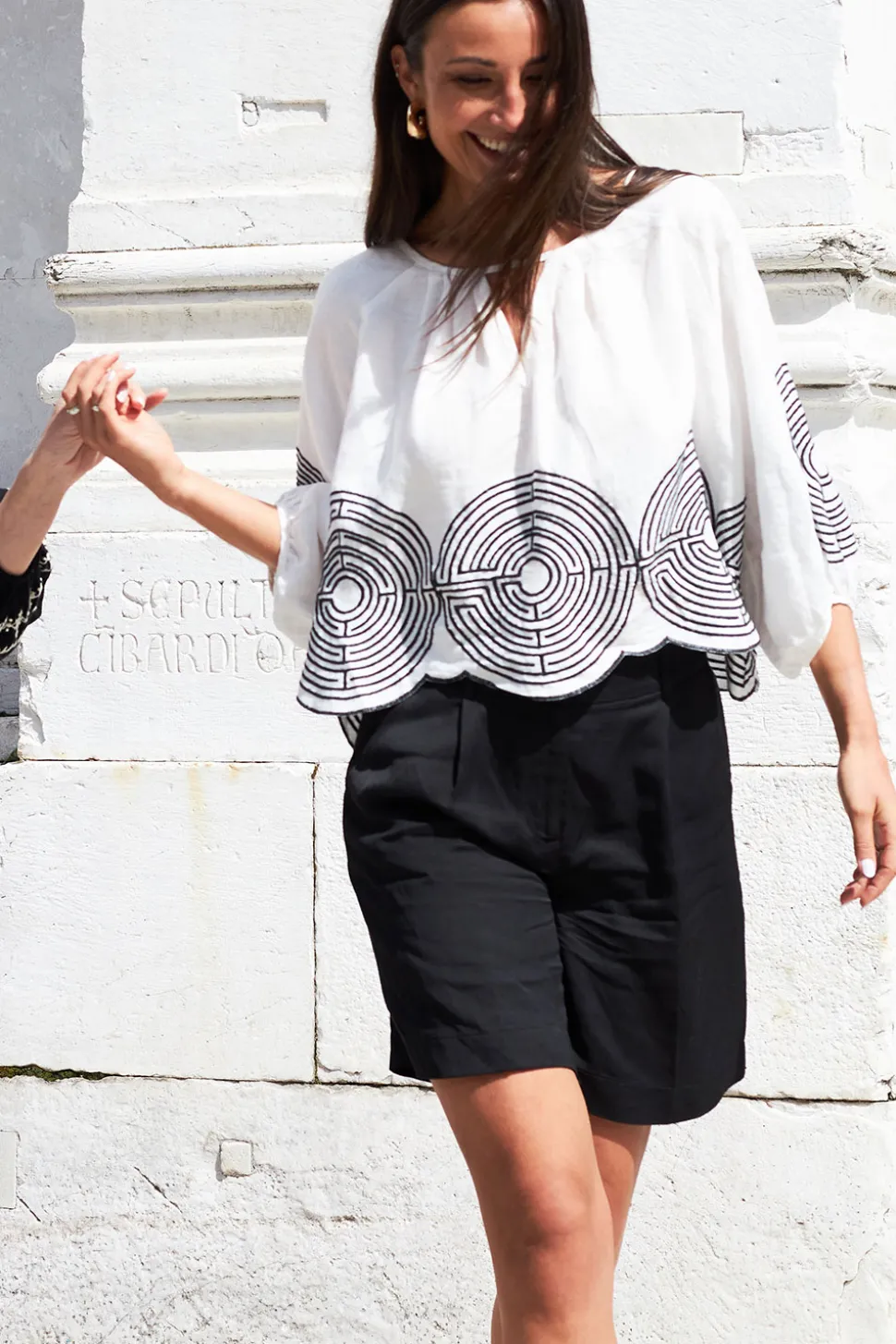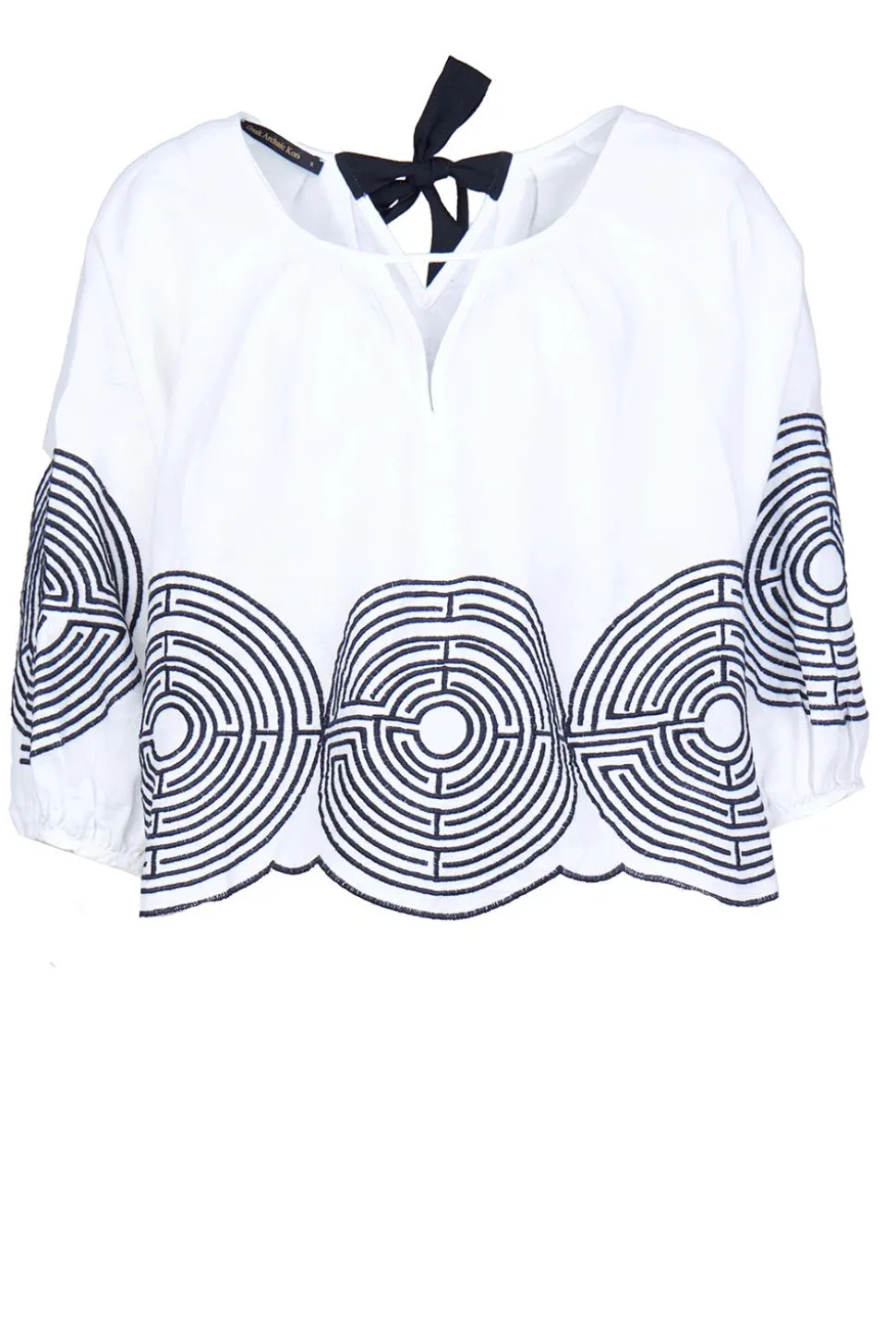 Outlet Greek Archaic Kori Top With Labyrinth Embroidery Nore | White… | | Little Soho