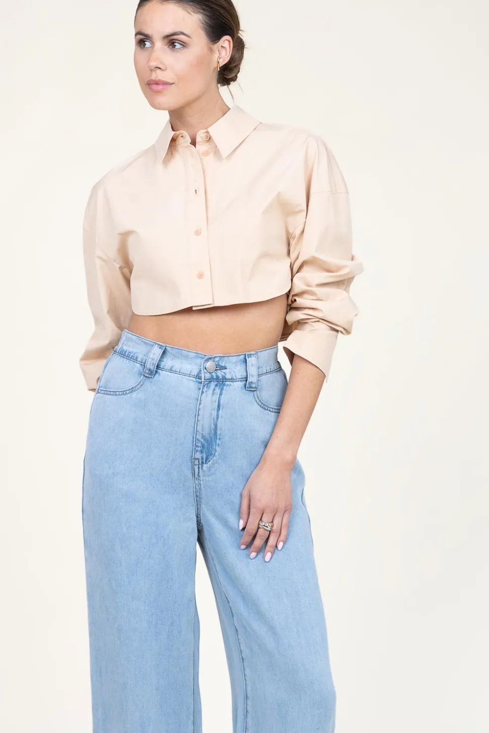 Your New Favorite Blousecropped Poplin Blouseshirt Collarlong Sleeves With Cuffscloses With Buttonscropped Fitcompositio…