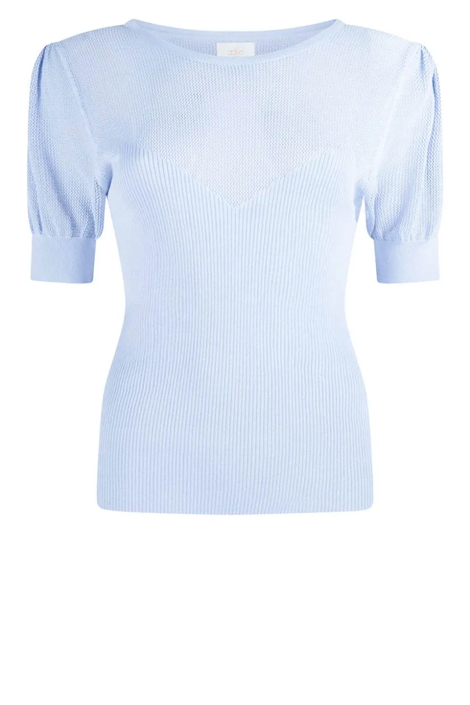 Your New Favorite Topknitted Rayon Top With Bustierround Neckshort Puffed Sleeves With Cuffssee Through Fabric At Topregular Fitcomposition65% Rayon, 35% Polyamidewashing Instructions