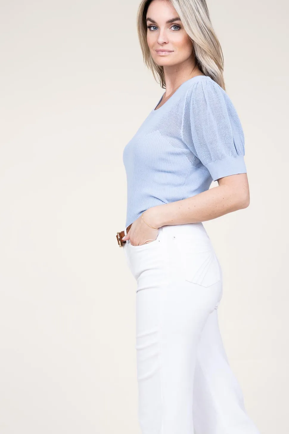 Your New Favorite Topknitted Rayon Top With Bustierround Neckshort Puffed Sleeves With Cuffssee Through Fabric At Topreg…