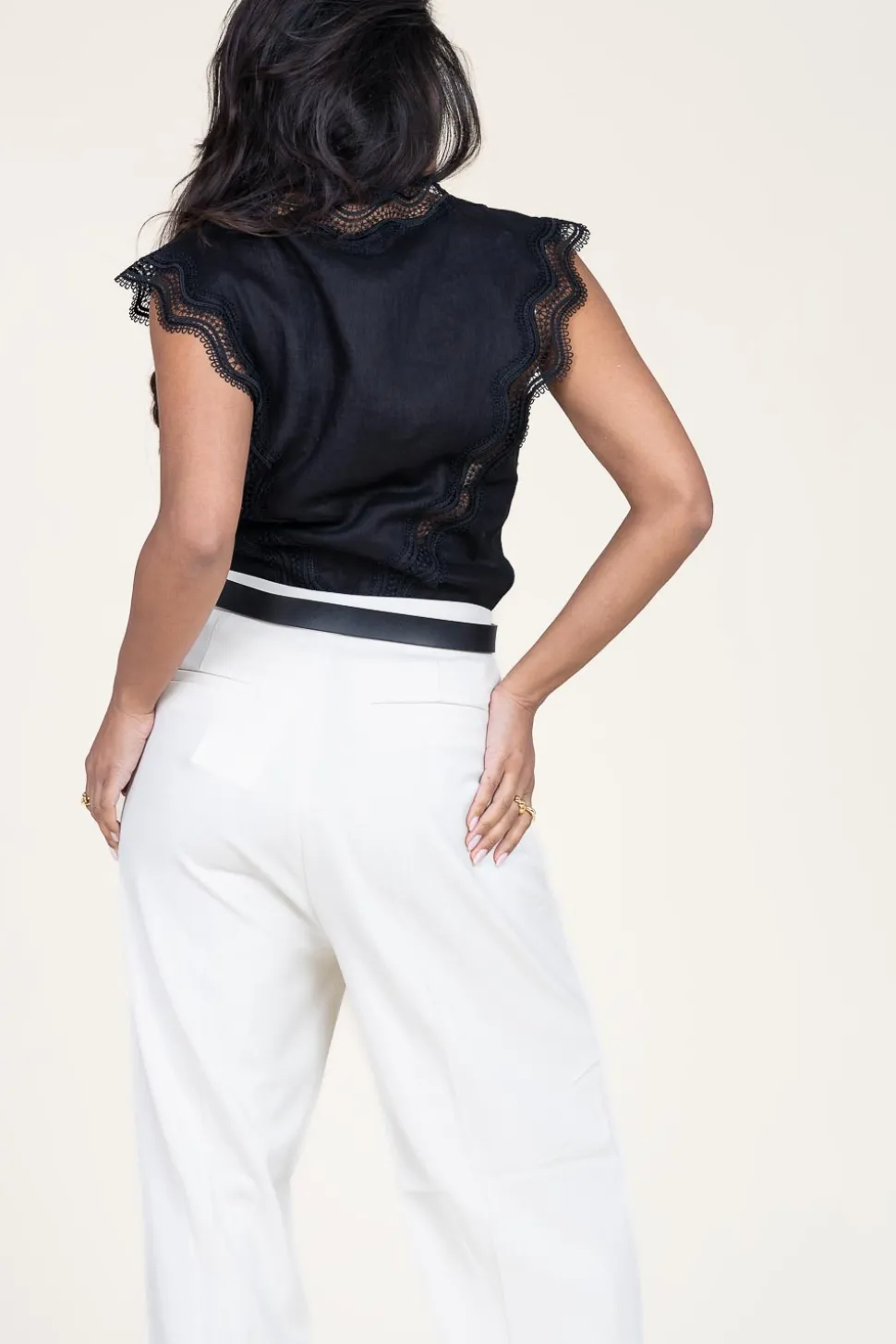 Shop Copenhagen Muse Linen Lace Top Natuli | Black… | | Little Soho
