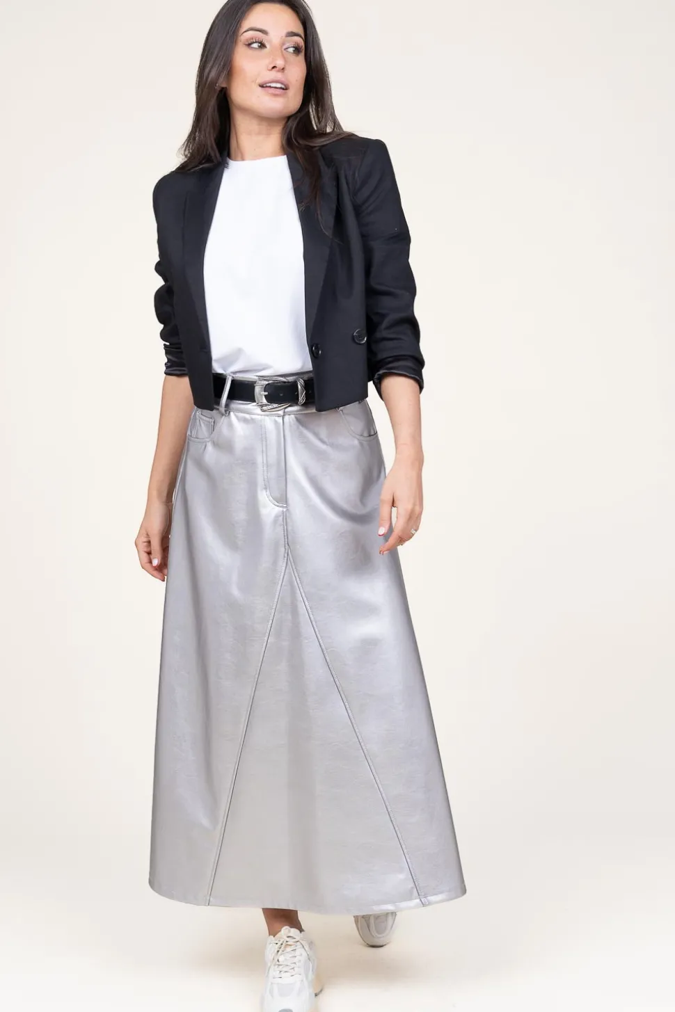 Store D-ETOILES CASIOPE Metallic Faux Leather Skirt Gloria | Silver… | | Little Soho