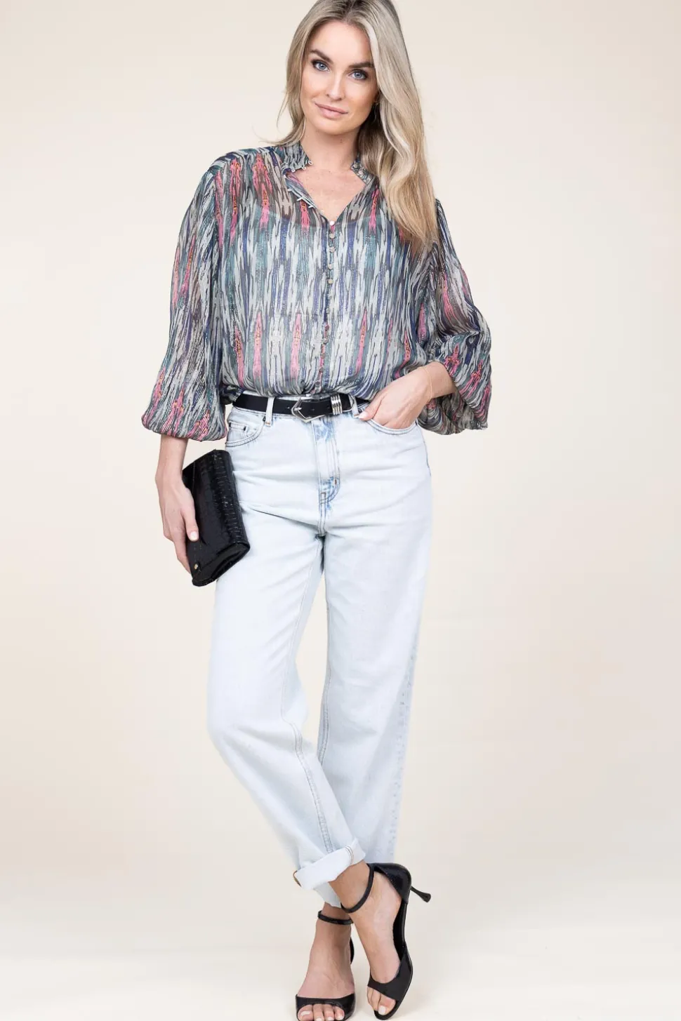Eyecatcher Alert!Lurex Blouse With Printround Necklong Sleeves With Cuffscloses With Buttons&Amp;Nbsp;Linedregular Fitco…