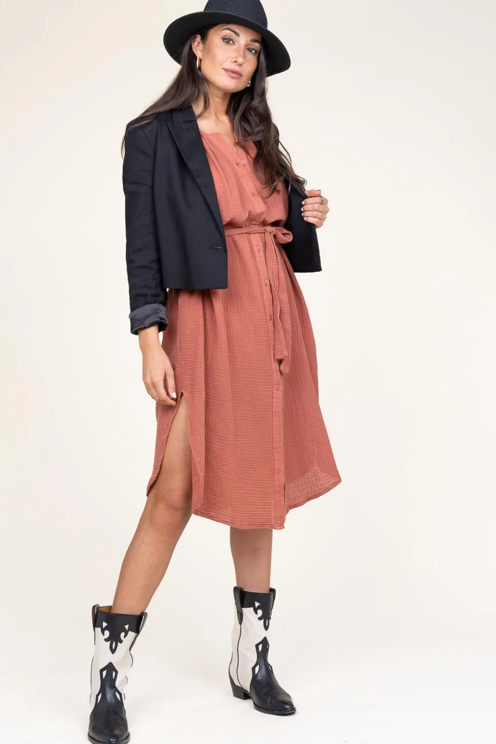 Your New Favorite Dresscotton Mousseline Dressround Necklong Sleevestwo Slanted Pocketstwo Splits On The Sidescloses Wit…